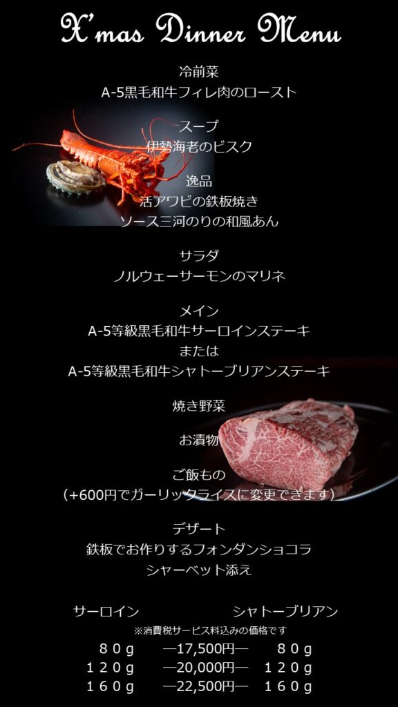 今年もクリスマスは特別コースを販売いたします。